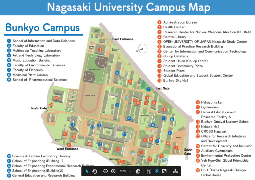 Road train “Nagasaki station square” → (for Akasako) → get off at “Nagasaki University square”