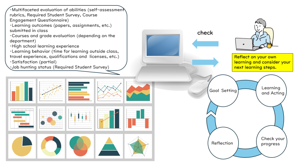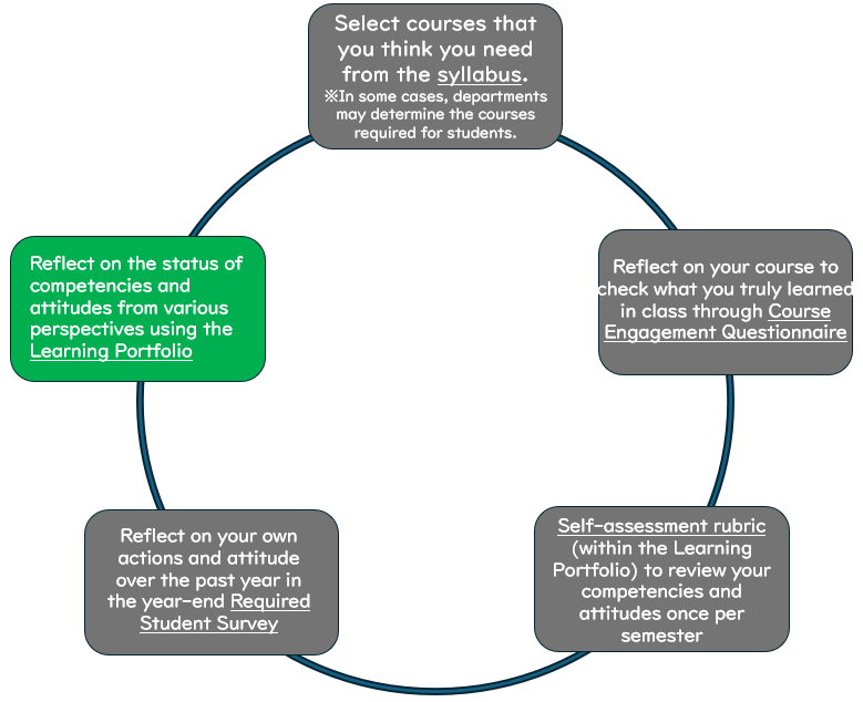 For details, please refer to the manual (available for both PC and smartphone versions). The Learning Portfolios for students enrolled in the 2024 academic year or earlier are located on LACS (Learning Support System).