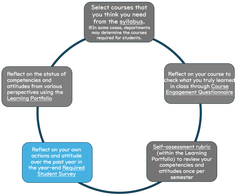 Some of the results (other than non-disclosure items) will be accumulated in the portfolio and will be used as a reference for mentor faculty members and academic advisors of each faculty / department to give advice on how to study in the future.