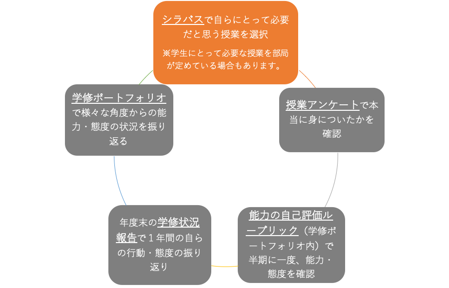 シラバスは本学のディプロマポリシーにもとづいた授業計画が記されています